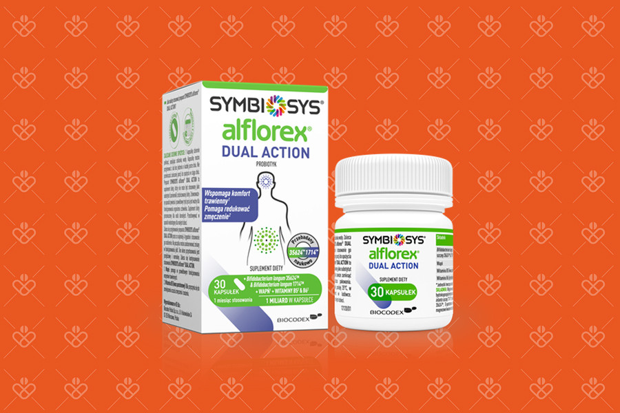 Probiotyk Alflorex Dual Action polecany jest dla osób dorosłych żyjących w stresie i zmagających się z dyskomfortem jelitowym.