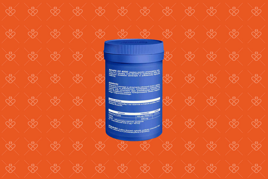BICAPS D3 4000 to suplement diety w kapsułkach zawierający witaminę D3 pozyskaną z lanoliny, w porcji 4000 IU (100 µg) na kapsułkę. Uzupełnia codzienną dietę dorosłych w witaminę D wspierającą odporność, kości, mięśnie i gospodarkę wapniowo-fosforanową.