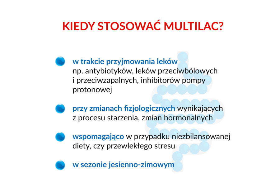Najważniejsza jest regularność i stała pora dnia. Multilac kapsułki można przyjmować w sposób wygodny dla siebie, stosując raz dziennie.