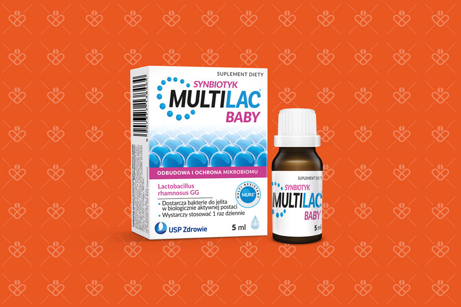 Multilac Baby to synbiotyk, czyli probiotyk i prebiotyk w jednej formule. To Multilac w kroplach przeznaczony dla niemowląt i dzieci, który uzupełnia dietę w szczep Lactobacillus rhamnosus GG oraz fruktooligosacharydy FOS. Multilac Baby krople podaje się raz dziennie w stałej porcji 6 kropli.