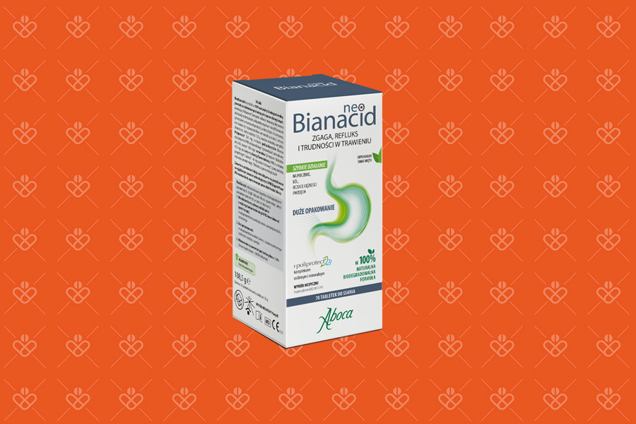 NeoBianacid to wyrób medyczny w postaci tabletek do ssania o smaku miętowym, przeznaczony do łagodzenia objawów refluksu żołądkowo-przełykowego, zgagi i bólu żołądka. Produkt jest w 100% naturalny i biodegradowalny. Zawiera kompleks roślinno-mineralny Poliprotect®, który wzmacnia naturalną barierę ochronną błony śluzowej żołądka i przełyku. NeoBianacid nie zawiera substancji syntetycznych, półsyntetycznych ani modyfikowanych genetycznie, a wszystkie składniki pochodzą z upraw ekologicznych. Produkt może być stosowany u dorosłych, kobiet w ciąży, karmiących piersią oraz u dzieci powyżej 6 roku życia.